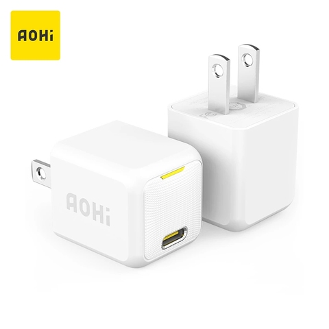 Cargador AOHI GaN 20W USB C cargador PD 3,0 Mini tipo C carga rápida para iPhone Galaxy Huawei cargador rápido QC 3,0